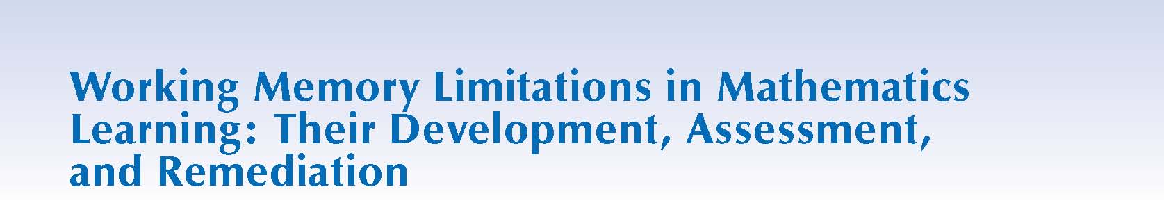 Taken together, the research reviewed in this article shows that we are making significant progress toward achieving a more complete understanding of the nature of working memory, its typical course of development, and the best methods for assessing its various features. We have also made important advances in discerning how working memory limitations and impairments can hinder the attainment of proficiency in mathematics, and we have just begun to explore the most promising strategies that can be implemented to enhance the working memory skills most relevant for improving students’ mathematical learning and performance. Finally, I hope that the information provided here will be of some use to those of you who teach in identifying working memory limitations in your students, modifying the instructional environment to minimize extraneous or distracting information that might interfere with efficient selective attention, and designing strategies for enhancing your students’ working memory skills.