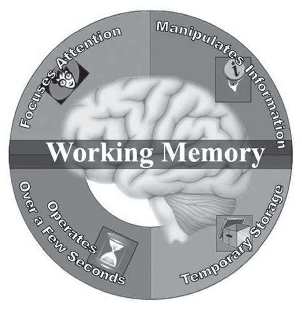 . . . working memory is probably best defined as a limited capacity system responsible for temporarily storing, maintaining, and mentally manipulating information over brief time periods to serve other ongoing cognitive activities and operations.